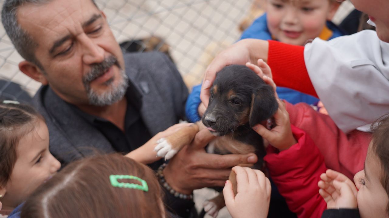 Çocukların barınaklarla ilgili duygu ve düşüncelerini alan Başkan Yardımcısı Güven Sönmez, hayvan sevgisine dikkat çekti.