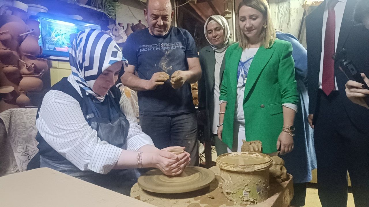 Ziyaret kapsamında ilçeye bağlı Kınık köyünde bulunan çömlek atölyelerini gezen Ercan, çömlek çarkının başına geçerek kendi elleriyle çömlek yaptı. Renkli görüntülere sahne olan etkinlik, kadın girişimcilerin çalışmalarına verilen önemin de altını çizdi.