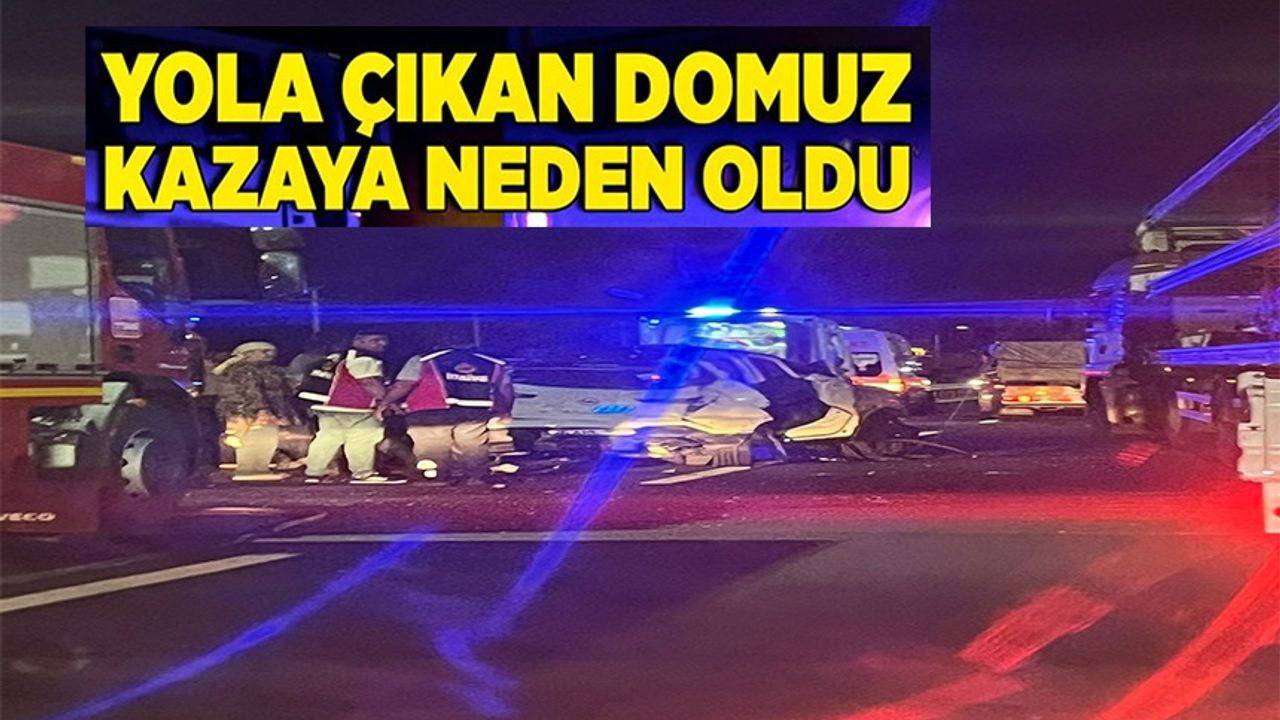 Bilecik'te aniden yola çıkan domuz nedeniyle kontrolden çıkan otomobilin bir kamyona arkadan çarpması sonucu yaşanan trafik kazasında 5 kişi yaralandı.
