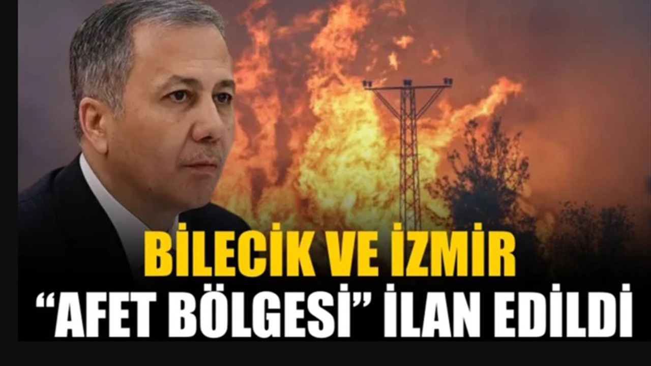 İçişleri Bakanı Ali Yerlikaya, sosyal medya hesabından yaptığı açıklamada İzmir ve Bilecik’in ‘Genel Hayata Etkili Afet Bölgesi’ ilan edildiğini belirtti. Bakan Yerlikaya, 27 Haziran-24 Temmuz tarihleri arasında çıkan yangınlarla mücadelede AFAD'dan bin 191 personel ve 198 arama-kurtarma aracı, Jandarma Genel Komutanlığından 8 bin 953 personel ve 18 hava aracı, Emniyet Genel Müdürlüğünden bin 675 personel, 3 helikopter ve 129 TOMA, Sahil Güvenlik Komutanlığından 237 personelin görev aldığını ifade etti.
