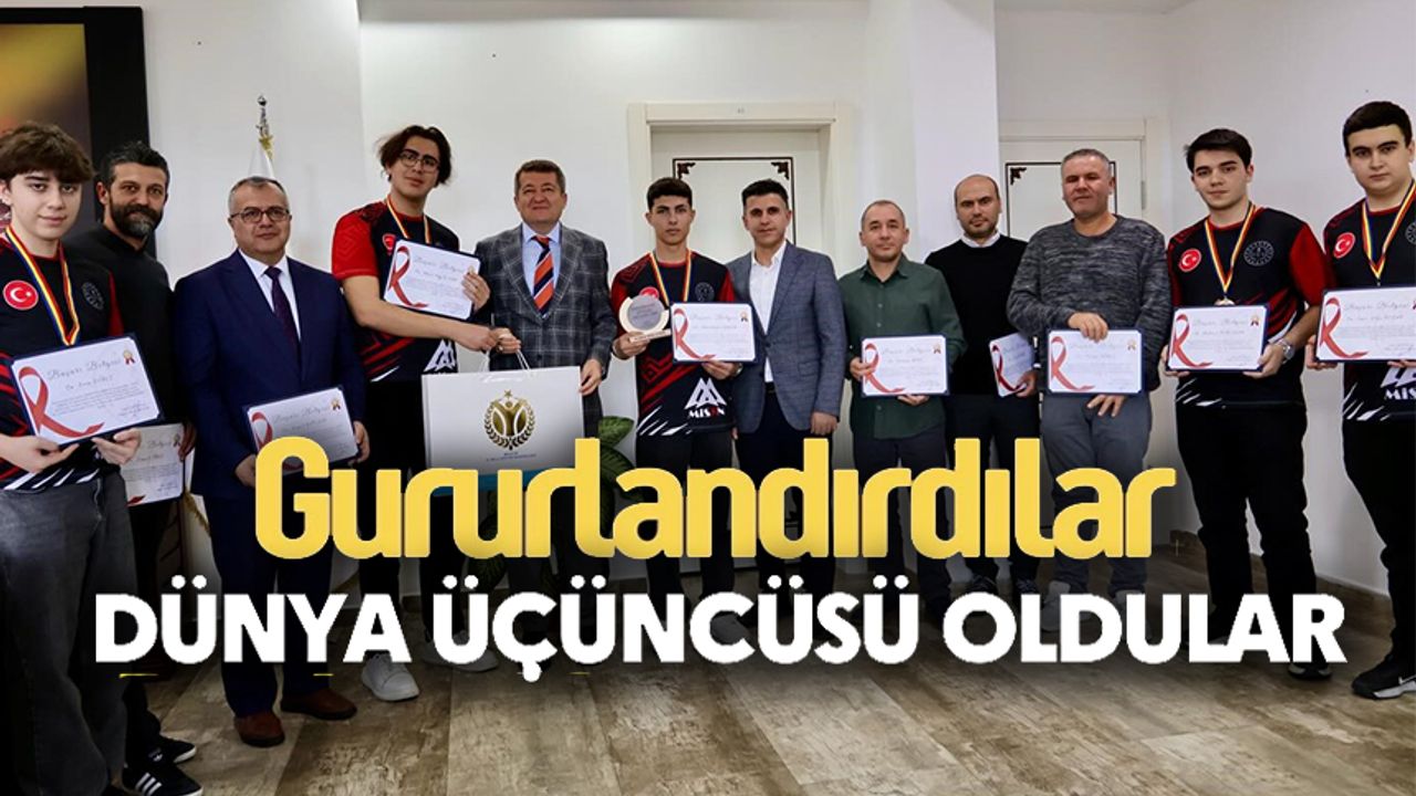 Bilecik İl Milli Eğitim Müdürü Serdal Şimşek, dünya üçüncülüğü elde eden öğrenci ve öğretmenleri makamında kabul etti.