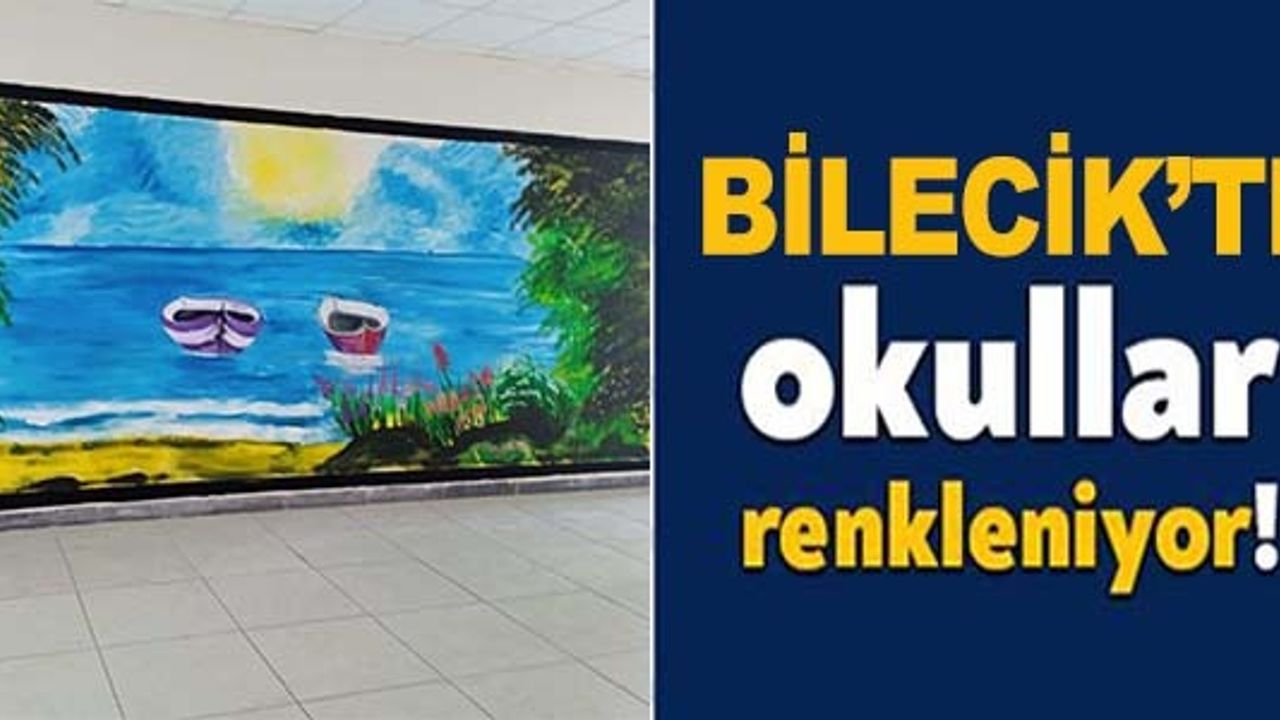 Bilecik'te görsel sanatlar öğretmeni ile öğrencileri tarafından yapılan eserler okula renk kattı.