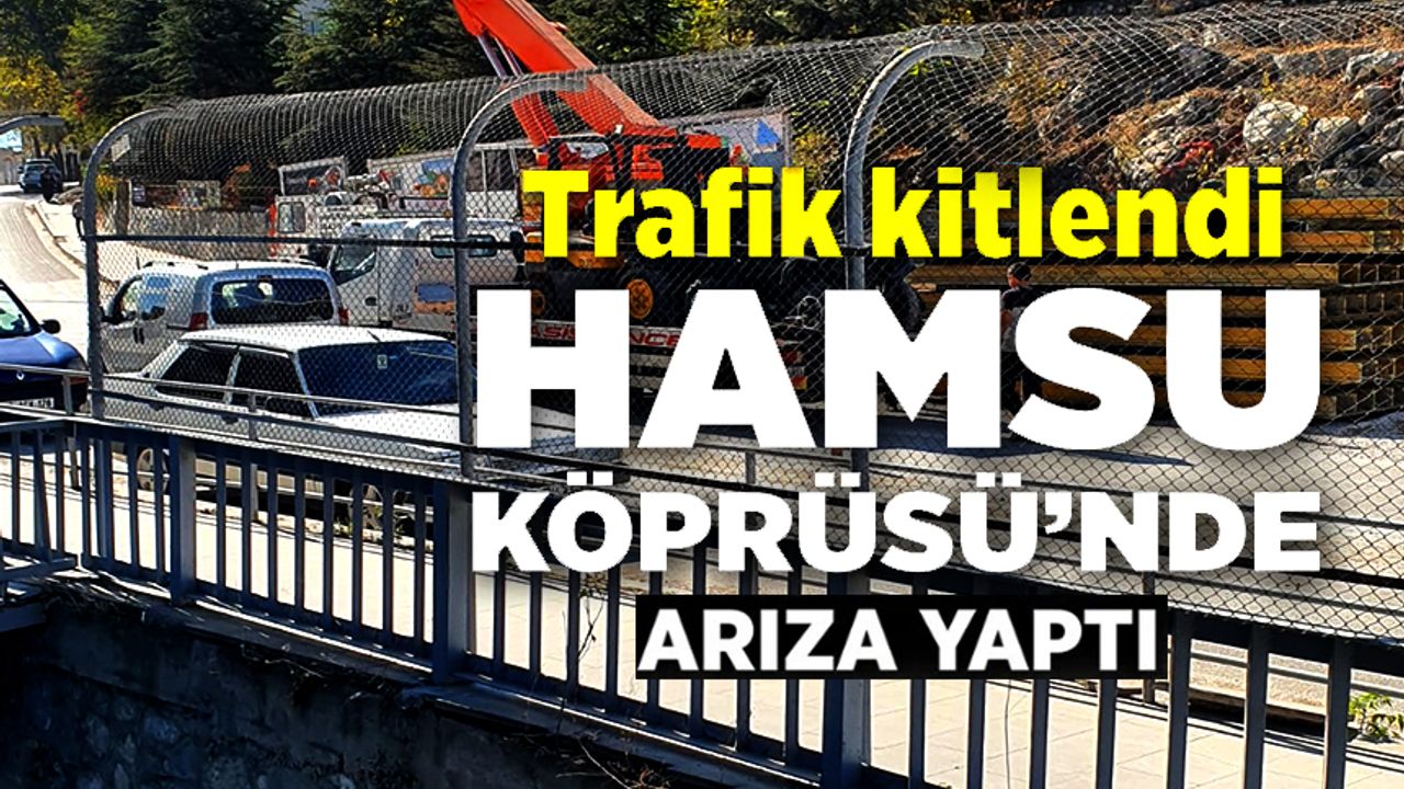 Bilecik'te geçtiğimiz Ağustos ayında 'Depreme Dayanıksız' olduğu için yıkımına başlanılan ve 90 gün sonra tamamlanması planlanan Hamsu Köprüsü'nün eski kısmında çalışmalar devam ediyor. Trafik eski köprü yanına daha önceden yapılan yeni köprüden kontrollü bir şekilde tek gidiş tek geliş olmak üzere verilirken, Çarşı istikametine uzun kuyruklar oluştu. Trafik yoğunluğunun yaşandığı bölgede bir de kasasında forklift taşıyan kamyonet arıza yapınca trafik kilitlenme noktası geldi. Arıza yapan araç başka bir çekili ile çekilirken, daha sonra trafik bir nebze olsun rahatladı.