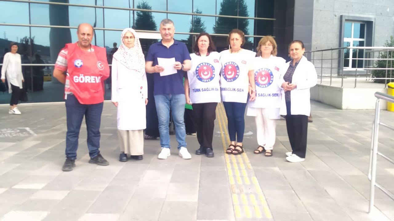 Türk Sağlık-Sen Başkan Vekili Ahmet Kuyucu, İl Sağlık Müdürlüğü ve Eğitim Araştırma Hastanesi önünde gerçekleştirilen iş bırakma eylemi kapsamında bir basın açıklaması yaparak, kamu işvereninin toplu sözleşme teklifine sert tepki gösterdi.
