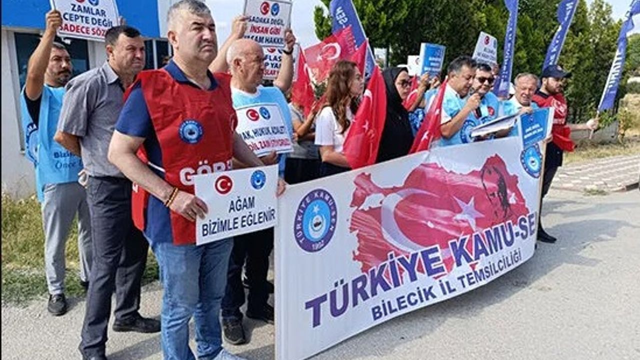 Türkiye Kamu-Sen ve Türk Eğitim-Sen’e bağlı sendikaların Bilecik’te görev yapan üyeleri, toplu sözleşme sürecinde kamu işvereninin sunduğu zam teklifine tepki göstererek bugün iş bıraktı.