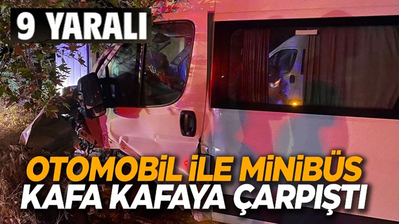 Bilecik'te minibüs ile otomobilin kafa kafaya çarpışması sonucu meydana gelen trafik kazasında 9 kişi yaralandı.