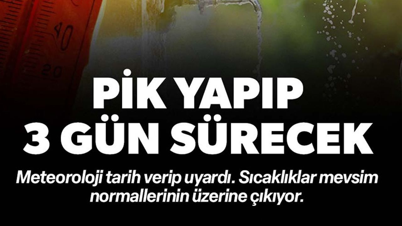 Meteoroloji Genel Müdürlüğü (MGM) tahminlerine göre serinleten rüzgarlar sona eriyor, sıcaklıklar mevsim normallerinin üzerine çıkacak.Meteorolojiden yapılan son dakika açıklamasına göre, pazar günü tüm yurtta pik yapacak olan hava sıcaklıkları salı gününe kadar etkisini sürdürecek. Çarşambadan itibaren ise kademeli olarak düşüşe geçecek. Orta ve Doğu Akdeniz’in Toroslar mevkisi, Adana ve Osmaniye çevreleri ile Hatay kıyılarında yerel sağanaklar görülecek.