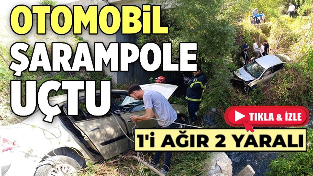 Bilecik'te seyir halindeyken bir tekerleğinin fırlaması sonucu kontrolden çıkan otomobil dere yatağına uçarken 1'i ağır 2 kişi yaralandı.