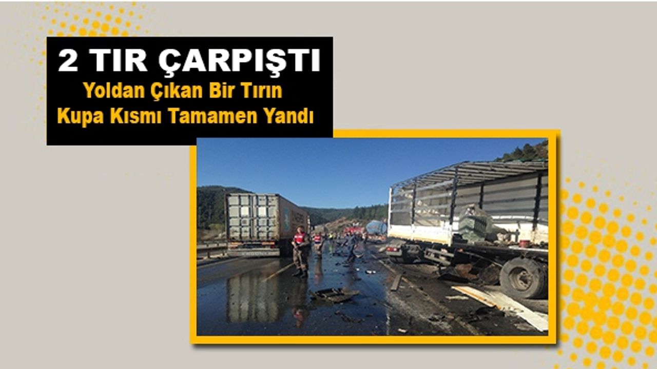 Bilecik’in Osmaneli ilçesi yakınlarında aynı istikamette seyreden iki tırın çarpışması sonucu bir aracın kupası tamamen yandı. Kazada tır şoförleri yara almazken, yol bir süreliğine trafiğe kapandı.