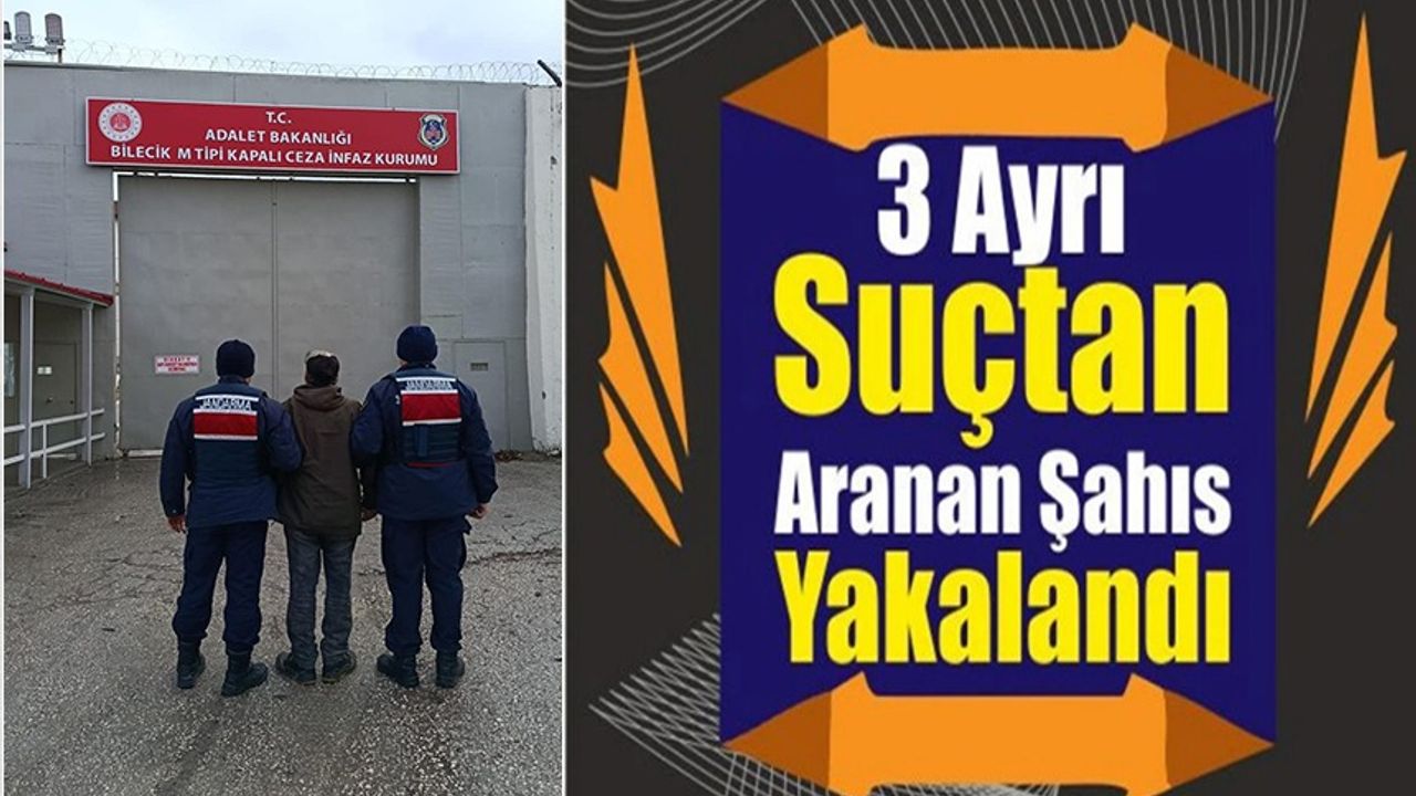 Bilecik'te 3 ayrı suçtan hakkında 3 yıl 9 ay kesinleşmiş hapis cezası bulunan şahıs jandarma tarafından yakalandı.