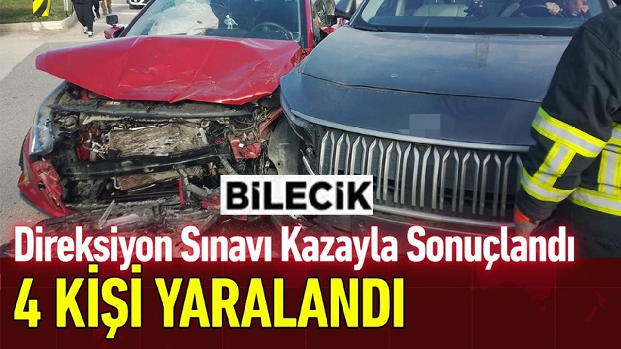 Bilecik'te direksiyon sınavına giren aday sürücünün kullandığı araç ile bir otomobilin çarpışması sonucu meydana gelen trafik kazasında 4 kişi yaralandı.