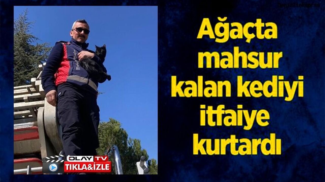 Bilecik'te bir ağaçta mahsur kalan kediyi itfaiye ekipleri kurtardı.