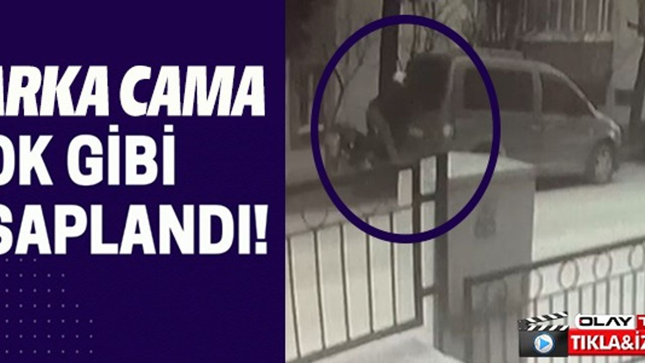 Kazada park halindeki aracın camı kırılırken, o anlar bir evin güvenlik kamerasına yansıdı.