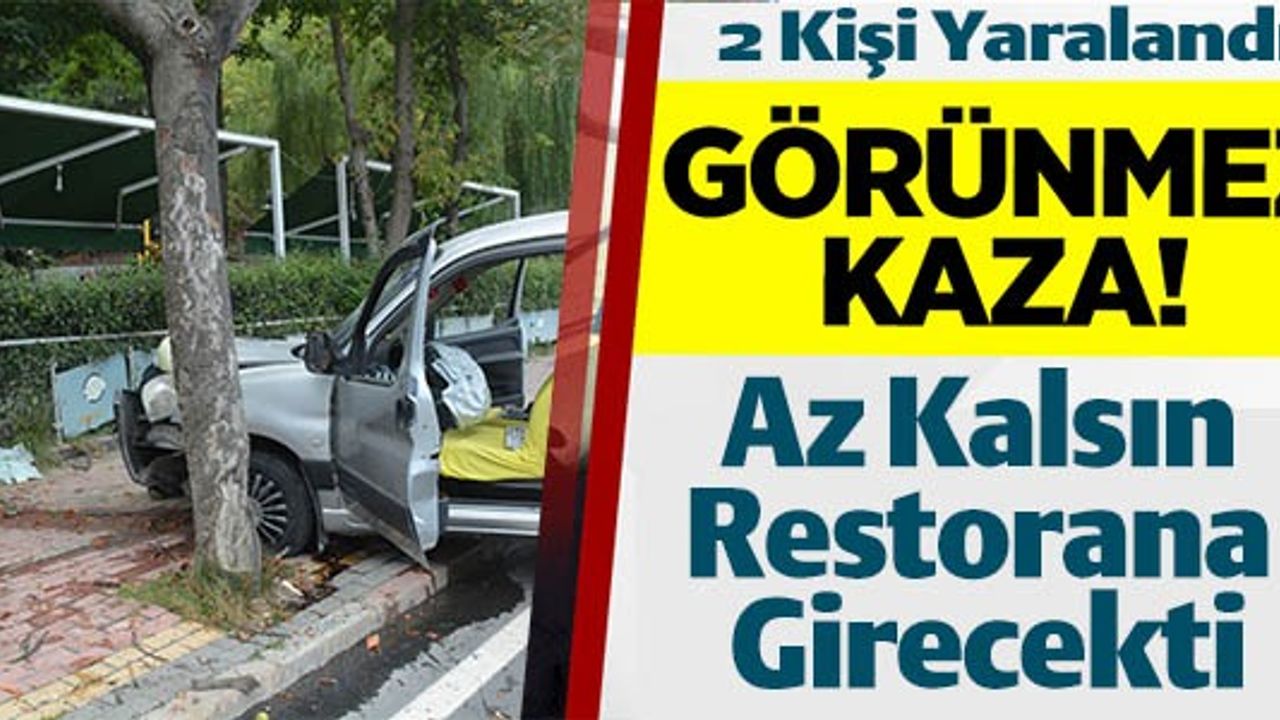 Kontrolden çıkan araç ilk yolun sağ tarafında kaldırım üzerinde bulunan ağaca, ardından bir restoran duvarına çarparak durabildi.