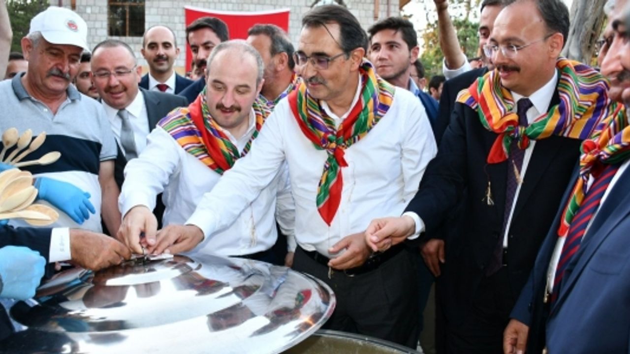 Enerji ve Tabii Kaynaklar Bakanı Fatih Dönmez ile Sanayi ve Teknoloji Bakanı Mustafa Varank, Bilecik’in Söğüt ilçesinde Şifalı Pilav Kapak Açma Töreni'ne katıldı. Bakanlar, pilav kazanı kapağını açınca 200’er TL bahşiş bıraktı.