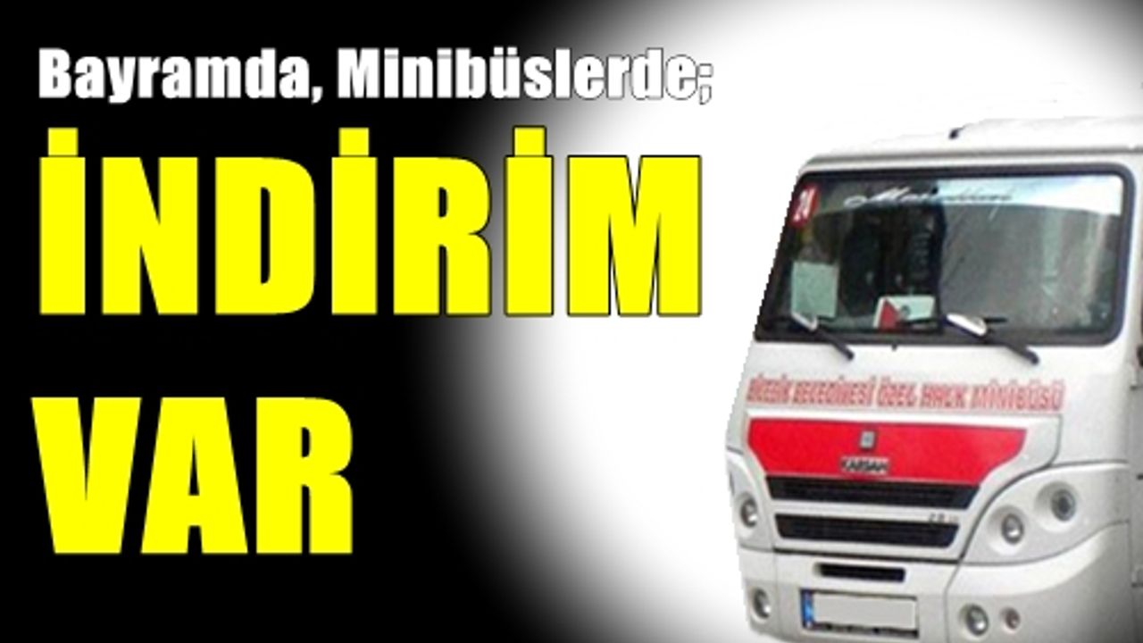 Bayram boyunca Bilecik M Plakalı Minibüslerde indirim var. Ramazan Bayramının 1. Ve 2. gününde şehir içi minibüslerinden indirimli olarak faydalanacak. Bilecik Belediyesi'nin aldığı ortak karar ile Bayramın 1 ve 2'inci gününde 1,5 TL olan minibüs ücretleri 1 TL olarak alınacak.