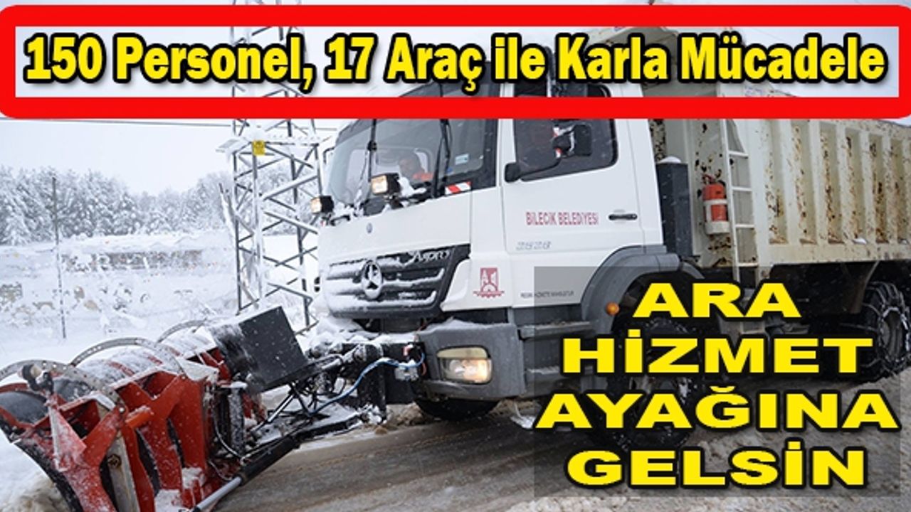 Bilecik Belediyesinden yapılan açıklamada, Bilecik Belediyesi Fen İşleri Müdürlüğü, Park ve Bahçeler Müdürlüğü, Temizlik İşleri Müdürlüğü, Zabıta Müdürlüğü ve AK Masa bünyesinde kurulan Karla Mücadele ve Koordinasyon Masası gece boyunca devam eden kar yağışı nedeniyle gerçekleştirdikleri çalışmalar kapsamında bütün ana ve ara arterleri ulaşıma açıldığı belirtildi.