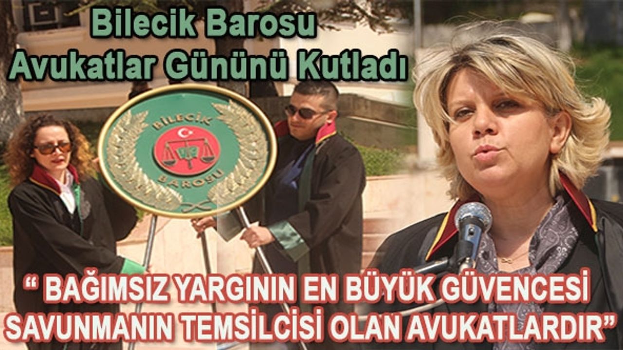 Bilecik Cumhuriyet Meydanı’nda Saygı duruşu, İstiklal Marşı ve Atatürk anıtına çelenk koymayla başlayan tören sonunda basın açıklama yapan Bilecik Baro Başkanı Halime Aynur, 5 Nisan Avukatlar Gününü yaşananlardan duyduğumuz endişe ve büyük bir acıyla karşıladıklarını belirterek, “ Her gün artan sorunlarımız yargıya, mesleğimize ve meslektaşlarımıza yapılan saldırılar ve en son Çağlayan Adliyesi’nde yaşananlar ne yazık ki tarihte karanlık bir sayfa olarak yerini alacaktır. İstanbul Çağlayan Adliyesi’nde görevi başında şehit edilen meslektaşımız Cumhuriyet Savcısı Mehmet Selim Kiraz’ı bir daha rahmetle anıyor ve bu menfur saldırıyı nefretle kınıyoruz. Bu saldırı tüm hukuk camiasına yapılmıştır. Bu kurşunlar adaletin başına ve yüreğine sıkılmıştır. Daha dün meslektaşımızın acısını yaşamamıza izin verilmeden, olayın sıcaklığı içinde olaydan avukatları, onların adliyeye giriş biçimlerini sorumlu tutmaya yönelen haksız ithamları ve kara propagandayı kabul etmek mümkün değildir. Adliyelerdeki güvenlik zaafının sebebi avukatlar değildir. Sistematik olarak bir algı operasyonu ve kara propaganda ile tüm sorunların avukatlara yöneltilmesi, onurla taşıdığımız cübbenin sorumlu tutulmaya çalışılması, avukatların hedef haline getirilmeye çalışılması kaygı verici bir noktaya ulaşmıştır” dedi.