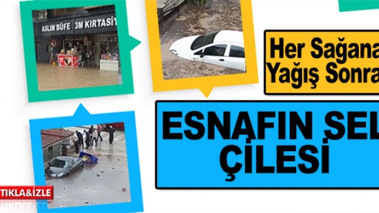Bilecik'te aniden bastıran sağanak yağış ve dolu, taşkınlara neden olurken, her sağanak yağış sonrası dükkanları sel basan esnaf isyan etti.
