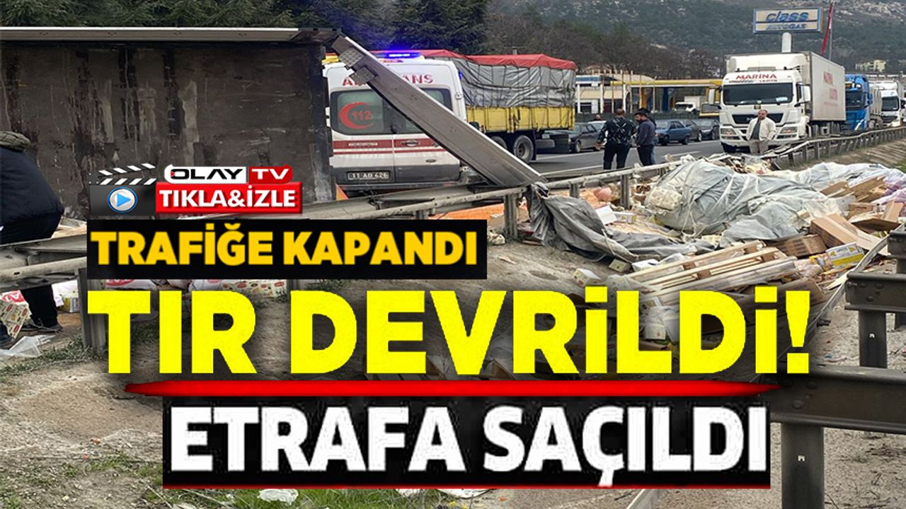 Bilecik'te seyir halindeki tır devrildi, dorsesindeki malzemeler yola saçıldı. Yaşanan trafik kazasında tır sürücüsü yaralandı.