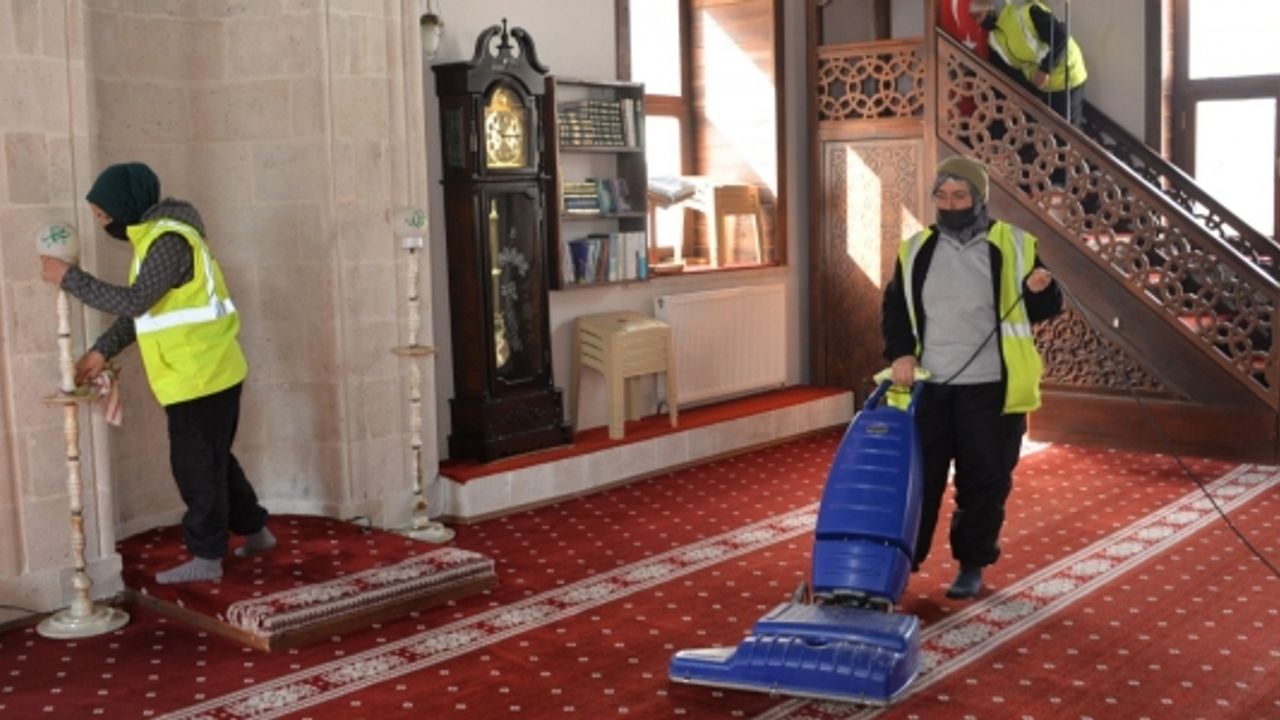 Temizlik ekiplerince cami ve mescitlerde yürütülen temizlik çalışmalarında cami içinde halılar süpürülüyor, kapı ve camlar itina ile siliniyor, ayakkabılıklar temizleniyor. Ayrıca cami dışarısında bulunan şadırvan ve tuvaletlerin de temizliği yapılıyor.