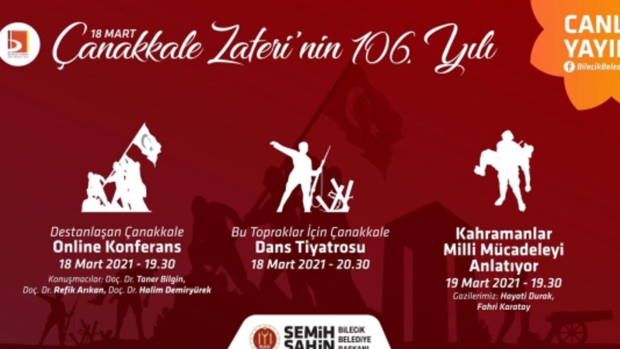 Bilecik Belediyesi ve Şeyh Edebali Üniversitesi işbirliğinde hazırlanan çalışma ile 18 Mart Çanakkale Zaferi ve Şehitleri Anma Günü, Bilecik Belediyesi sosyal medya hesaplarından canlı olarak gerçekleştirilecek programlarla anılacak.