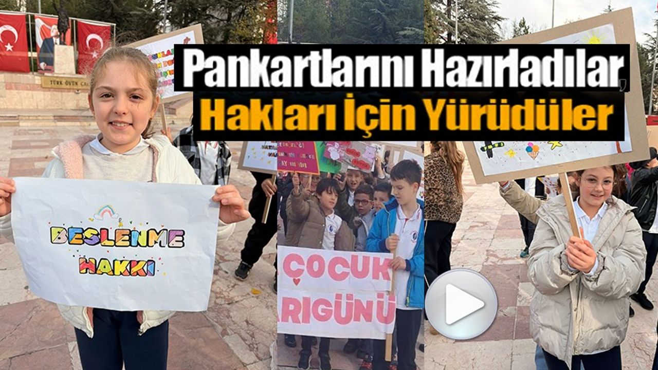 Bilecik'te ilkokul öğrencileri 'Çocuk Hakları Günü'nde hazırladıkları pankartlarla Cumhuriyet Meydanı'na yürüdüler.