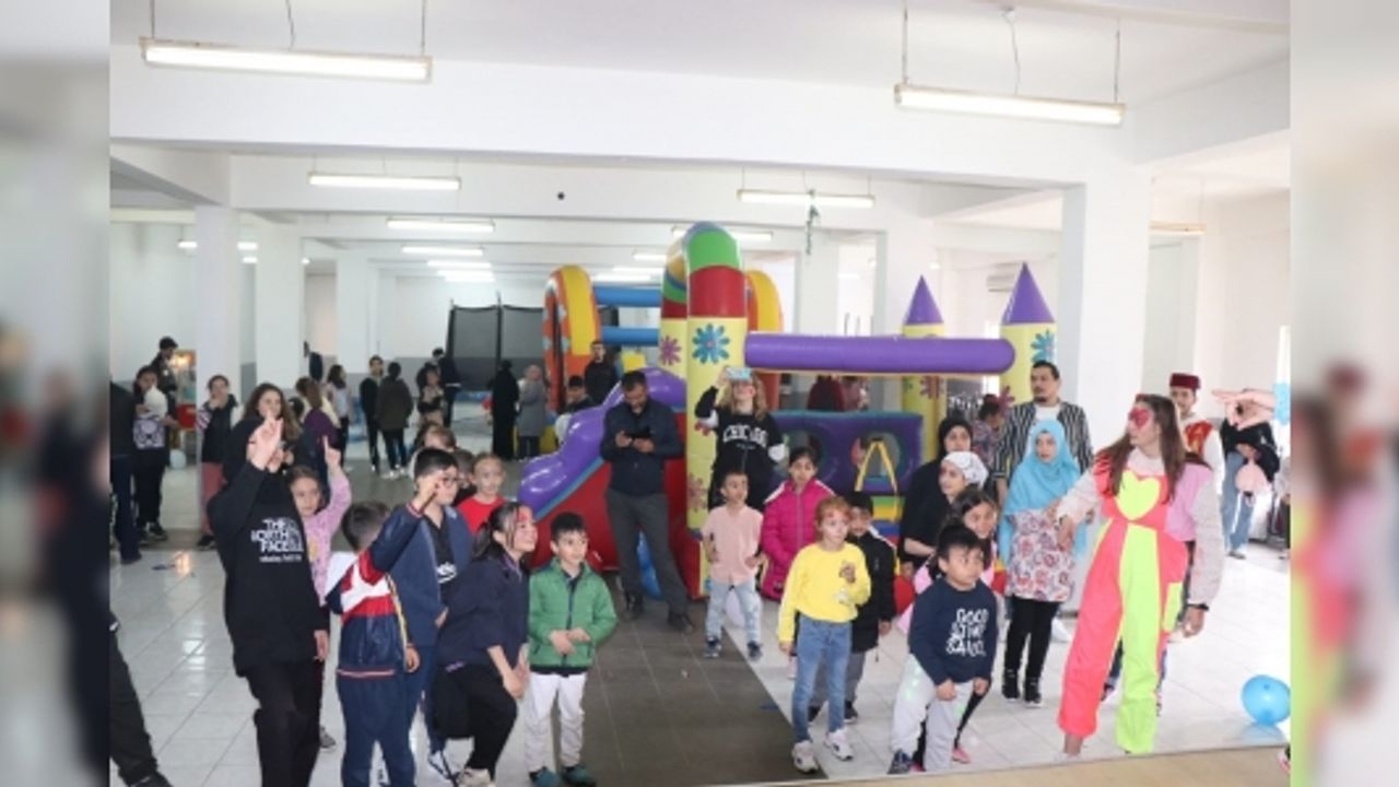 Merkezde şişme oyuncaklar, pamuk şeker, trambolin, palyaçolar ile çocukların keyifli vakit geçirebileceği alanlar oluşturuldu.