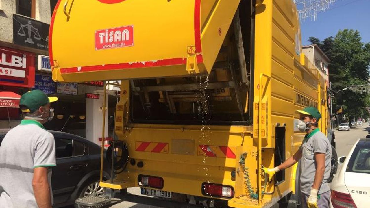Bilecik Belediyesi Temizlik İşleri Müdürlüğü ekipleri, kentteki tüm çöp konteynırlarını yıkayarak, dezenfekte ediyor.