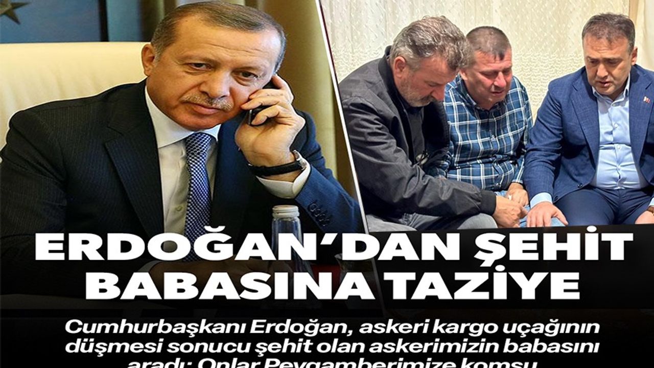 Cumhurbaşkanı Recep Tayyip Erdoğan, askeri kargo uçağının Gürcistan'da düşmesi sonucu şehit olan Şehit Hava Uçak Bakım Astsubay Üstçavuş İlhan Ongan'ın Bilecik'te yaşayan babasıyla telefonda görüşerek başsağlığı diledi.