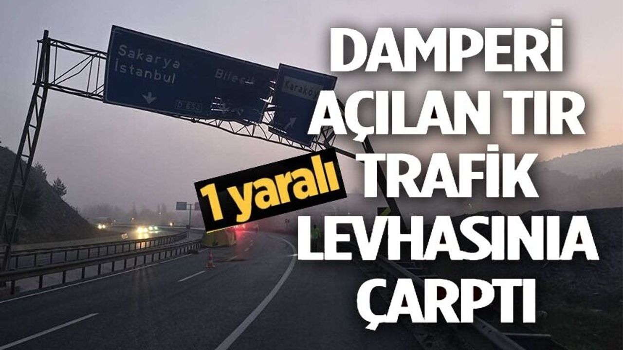 Bilecik’te damperi açılan tırın D-650 Karayolu’nda trafik levhasına çarpması sonucu meydana gelen trafik kazasında 1 kişi yaralandı.
