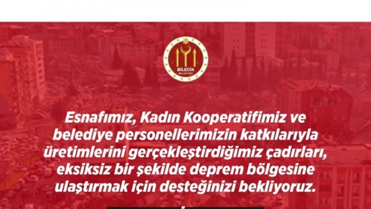 Esnafımız, Kadın Kooperatifimiz ve belediye peronellerimizin katkılarıyla üretimini gerçekleştirdiğimiz çadırları, eksiksiz bir şekilde deprem bölgesine ulaştırmak için desteğinizi bekliyoruz.