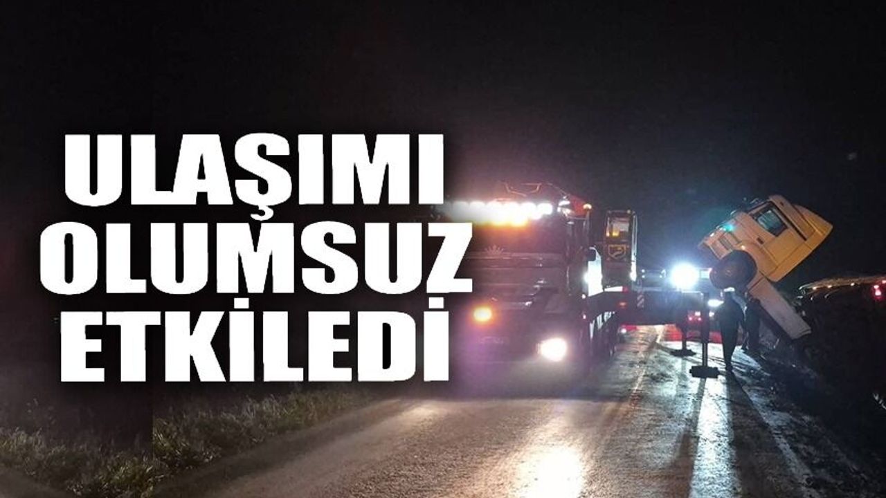 Bilecik'te seyir halinde kontrolden çıkan tır devrilirken, yaşanan kaza trafiği olumsuz etkiledi.