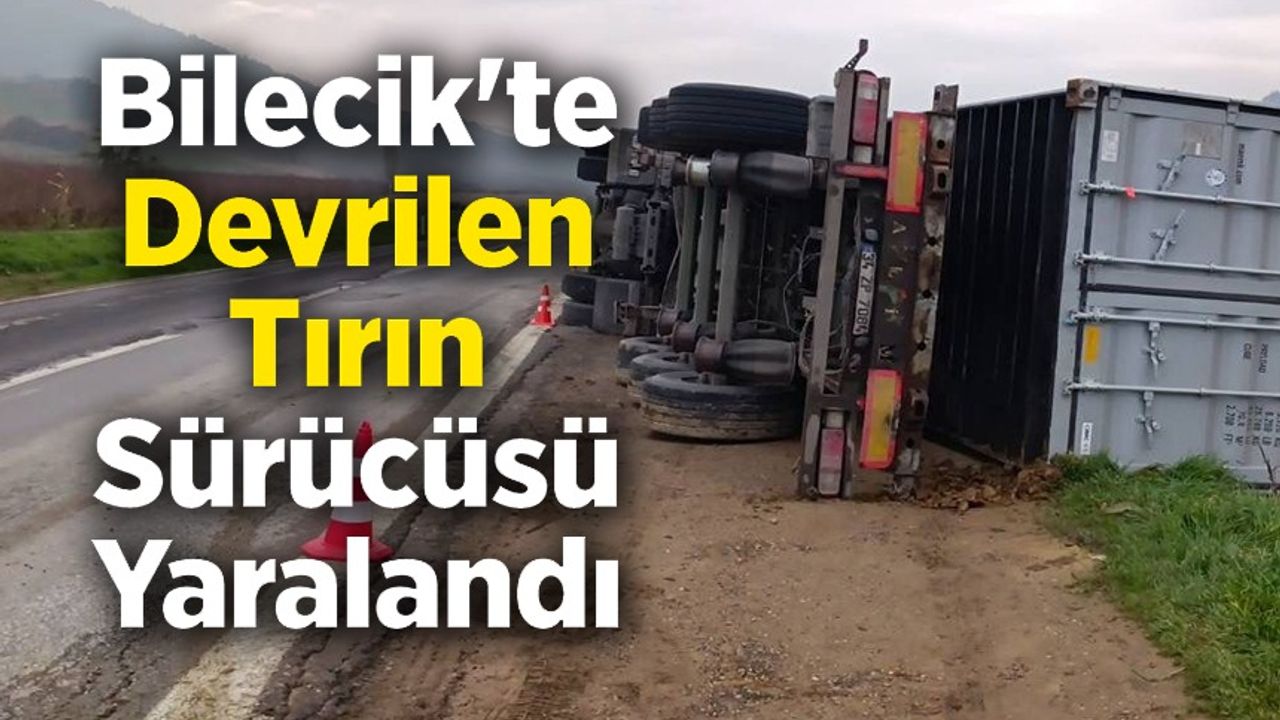 Bilecik'te seyir halinde kontrolden çıkan tır devrilirken, sürücüsü yaralandı.