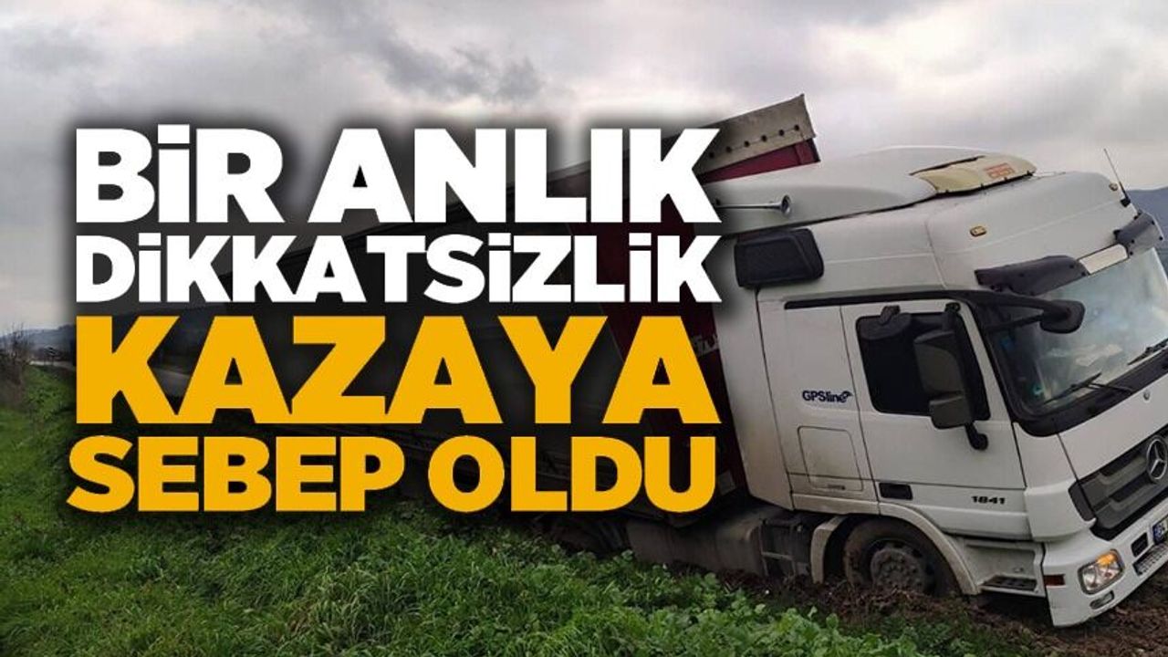 Edinilen bilgilere göre, Osmaneli ilçesine bağlı Bereket köyü mevkii Karatekin köyü kavşağında Bursa’nın İznik ilçesi istikametine seyir halinde olan Enis Ç. idaresindeki 34 LR 2756 plakalı tır, sürücüsünün bir anlık dikkatsizliği sonucu direksiyon hakimiyetini kaybederek şarampole düştü. Çevredeki vatandaşlar tarafından 112 Acil Çağrı Merkezi’ne yapılan ihbar üzerine olay yerine ekipler sevk edildi. Öte yandan kazada sürücü Enis Ç.’nin yaralanmadığı öğrenilirken, araçta maddi hasar meydana geldi. Kazanın ardından yol trafiğe tek şerit olarak sağlandı.