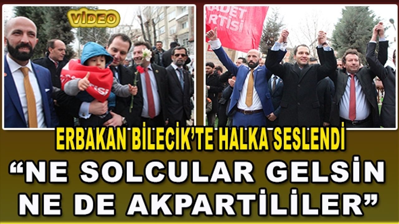 Bilecik İl Müftülüğünün önünde saat 14:00’da partililer tarafından karşılanan Erbakan, halkı selamlayarak sevgi yürüyüşü gerçekleştirip şehitler parkında ise halka seslendi.