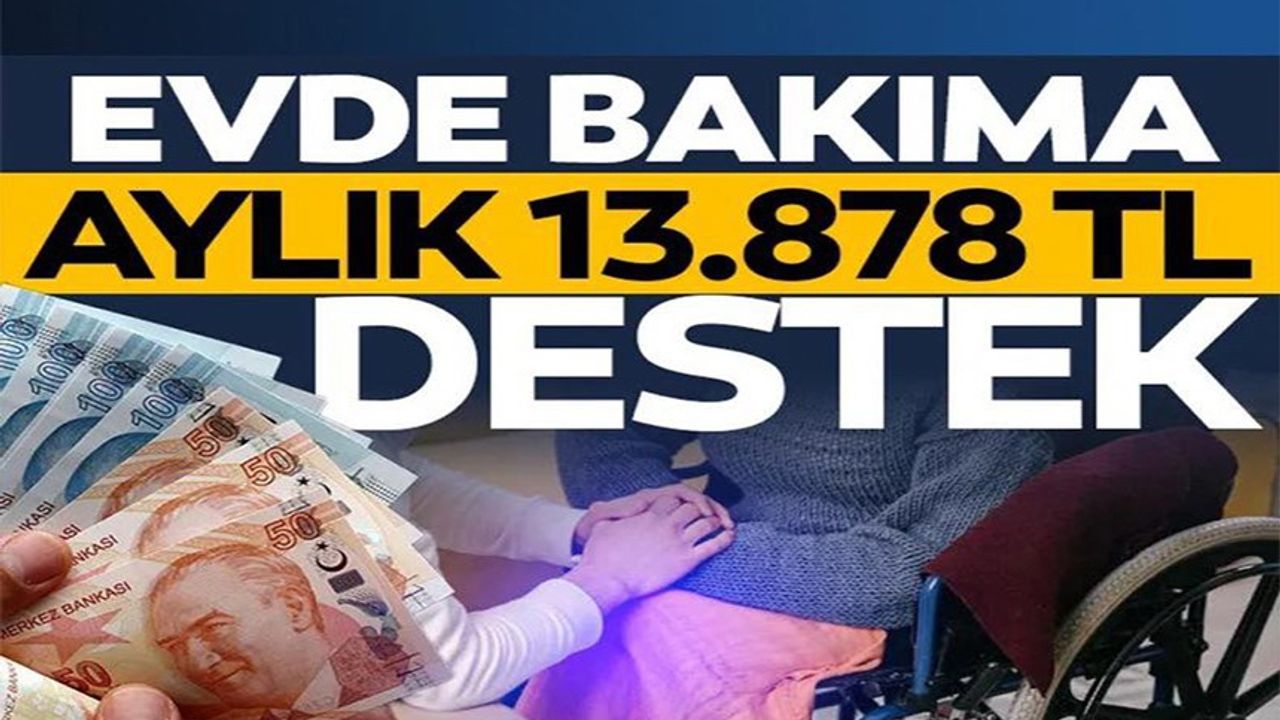 2025 yılında yaklaşık 11.702 TL olan evde bakım yardımı, 13.878 TL'ye yükseldi.