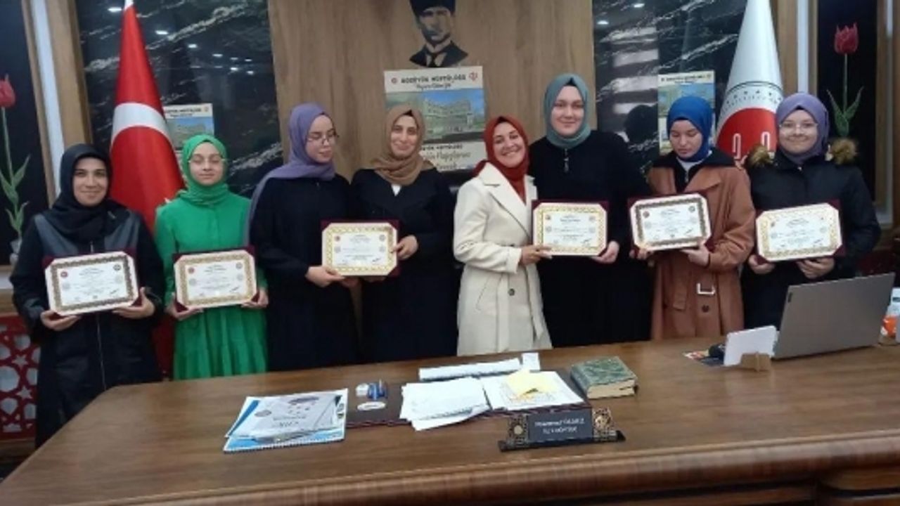 Bilecik’te gördükleri eğitimin ardından girdikleri hafızlık sınavında başarılı olan 6 kız öğrenci, belgelerini teslim aldı.