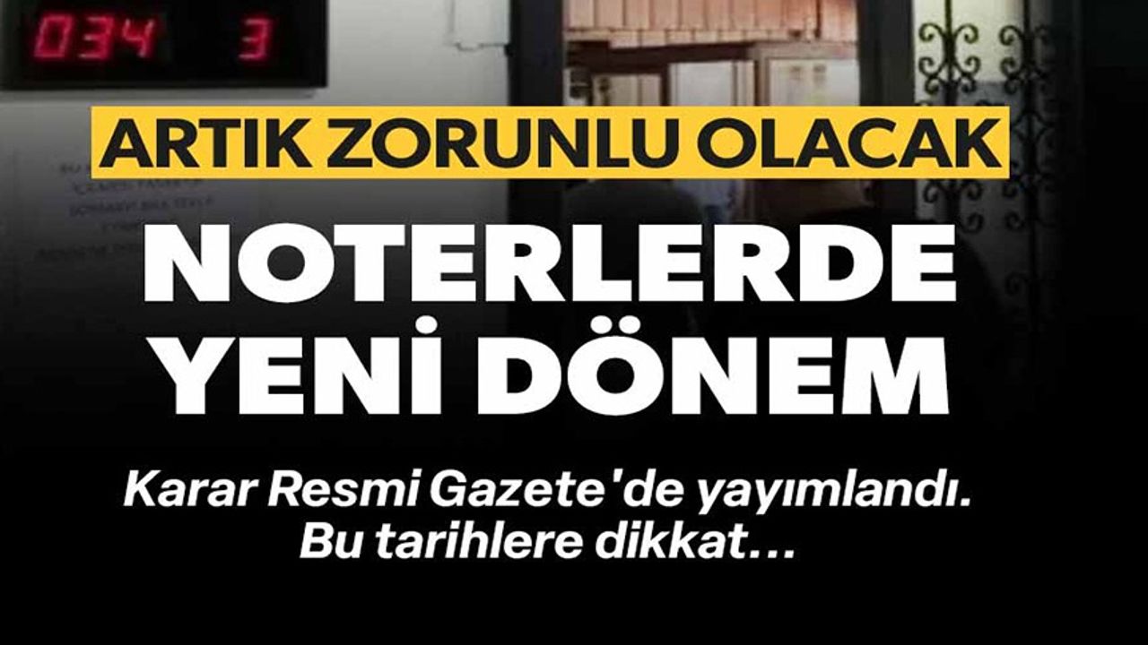 Resmi Gazete'deki yönetmeliğe göre noterlerin cumartesi ve pazar günleri nöbet tutması zorunlu oldu. Adalet Bakanlığı, 'Noterlerin tatil gün ve saatlerinde çalışmasına ilişkin usul ve esaslar hakkında yönetmelikte değişikliğe gitti. Karar Resmi Gazete'de yayımlandı. Karara göre, noterlik nöbeti, resmî tatil günlerine denk gelmemek şartıyla cumartesi ve pazar günleri tutulacak. En az dört, en fazla yirmi noterliğin bulunduğu il merkezlerinde en az bir noterliğin; yirmiden fazla noterliğin faaliyette bulunması hâlinde ise o yerdeki toplam noterlik sayısının en az yüzde beşi kadar noterliğin nöbet hizmeti vermesi de Resmi Gazete'deki yönetmelik ile zorunlu oldu.