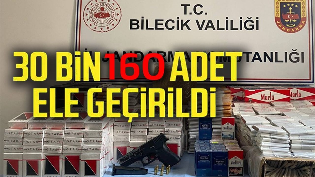 Edinilen bilgilere göre, Bilecik İl Jandarma Komutanlığı ekiplerince Osmaneli ilçesinde bir şüpheliye ait 3 ayrı adreste yapılan aramalarda; 1 adet ruhsatsız tabanca, 1 adet şarjör, 6 adet 7.65 mm tabanca fişeği, 21 bin 560 adet dolu makaron, 8 bin 600 adet boş makaron, 5 kilogram kıyılmış tütün ve 230 adet 20’lik boş sigara paketi bulundu.