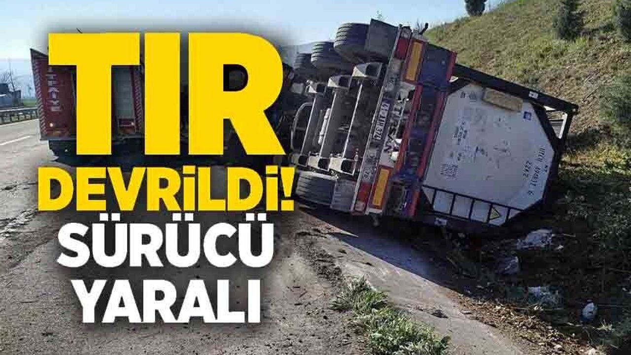 Bilecik'te seyir halinde kontrolden çıkan tır devrildi; sürücüsü yaralandı.