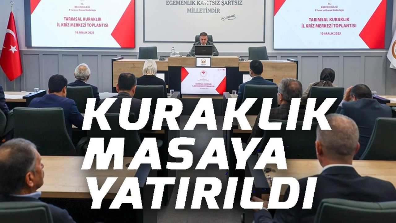 Toplantıya Vali Sözer'in yanı sıra Bilecik Belediye Başkanı Melek Mızrak Subaşı ve ilgili kurum amirlerinin katılımıyla düzenlenen Tarımsal Kuraklık İl Kriz Merkezi Toplantısı'nda, Bilecik'te kuraklık riskine karşı yürütülen çalışmalar, güncel durum değerlendirmeleri ve alınması planlanan ilave tedbirler ele alındı. Kuraklıkla mücadelede sahadaki ihtiyaçlar, üreticilerin karşılaştığı sorunlar ve kurumlar arası koordinasyon süreçleri ayrıntılı şekilde değerlendirildi. Ardından yapılan Hayvanları Koruma Kurulu Toplantısı'nda ise hayvanların korunmasına yönelik mevcut uygulamalar, sahadaki ihtiyaçlar ve kurumlar arasında iş birliği gerektiren konular masaya yatırıldı.