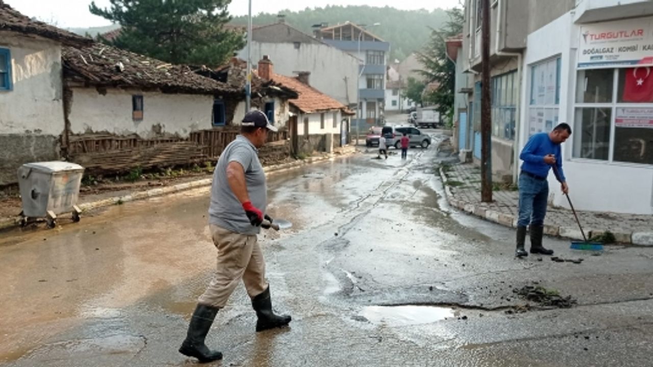 Yaklaşık yarım saat süren yağışın ardından Dodurga Belde Belediyesinde görevli ekipler, gece geç saate kadar temizlik çalışmaları yaptı.