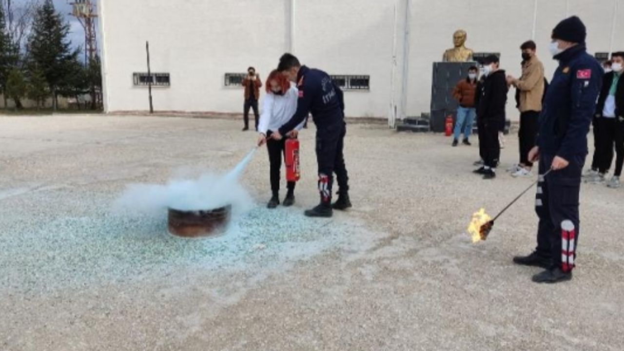 Eğitim çalışmasında öğrencilere yangına karşı önlemler, yangın çeşitleri ve yaşanabilecek yangın durumunda neler yapılması gerektiği gibi bilgilerin yanı sıra yangın tüpü ve nasıl kullanılması gerektiği anlatılarak kullanımı uygulamalı olarak gösterildi. Yangın eğitiminin sonunda öğrenciler de yangın tüpünü bizzat kendileri kullanarak yangın söndürme tatbikatı yaptı.