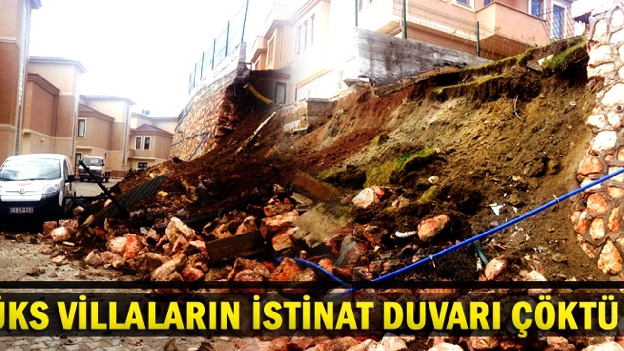 Bilecik'te lüks villaların bulunduğu bir sitenin istinat duvarının çökmesi sonucu 2 araç hasar gördü.