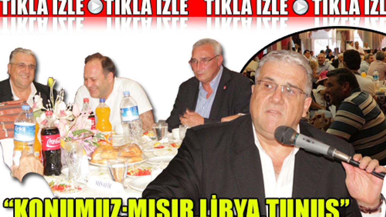 Cezayir'de kardeş kardeşi vuruyor. Tunus'ta muhalefet lideri öldürüldü ve insanlar birbirini katlediyor. Sıra nereye geliyor? Suriye'de bir;nbsp;milyon kişi ülkeyi terk etmiş çoğu da bizim ülkede yazık.;nbsp;Irak'ta, Afganistan'da binlerce kişi ölmüş işte bu birbirine kırdırılan Müslümanları hep beraber seyrediyoruz. Ne Avrupa'nın ne de Amerika'nın hiçbirinin gözünde bu İslam ülkelerinde yaşanan;nbsp;karışıklık var. Ne yazık ki bu kıyım;nbsp;göz ardı ediliyor ve sıra da yavaş yavaş Türkiye'ye geliyor. BOP Projesi'nde karıştırılmayan iki ülke kaldı. Birisi İran diğeri de Türkiye. Burada hepimizin çok dikkatli olması lazım;quot;;nbsp;dedi. Geceye, CHP cephesinden İl Başkanı ve Merkez İlçe Başkanı'ndan başka katılanlarda oldu. Eski Merkez İlçe Başkanı İlyas Dirik, CHP İl Saymanı Erdoğan Tan gibi CHP'li isimler de vardı. ;nbsp;