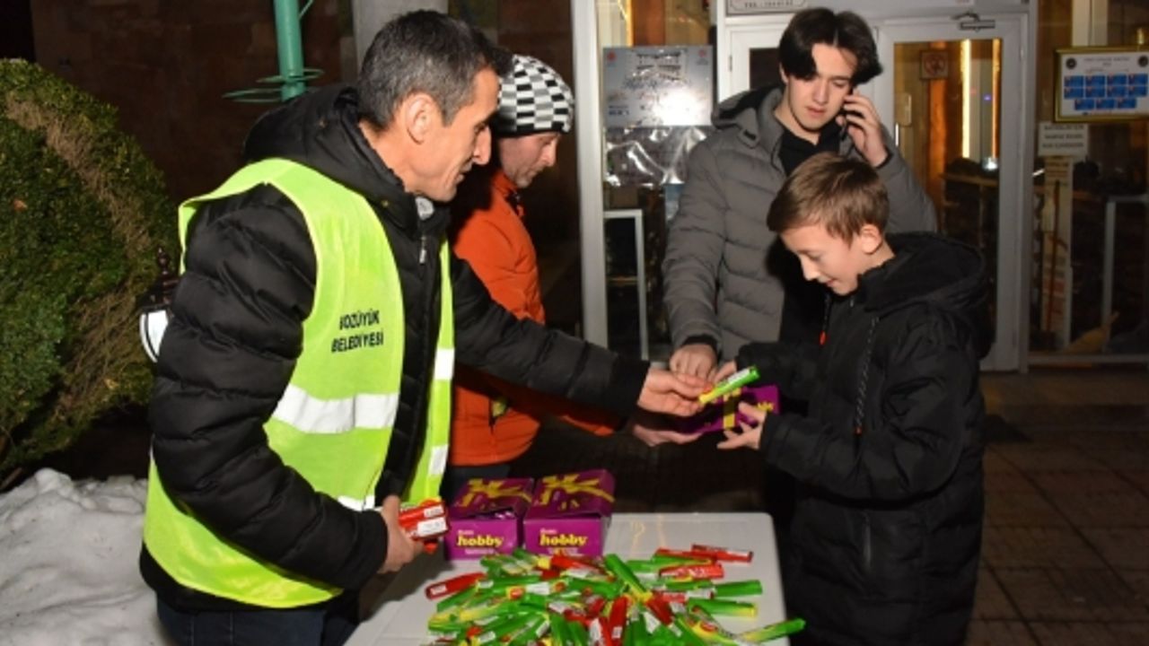 Bozüyük Belediyesi, Miraç Kandili dolayısıyla vatandaşlara kandil şekeri ikram etti.