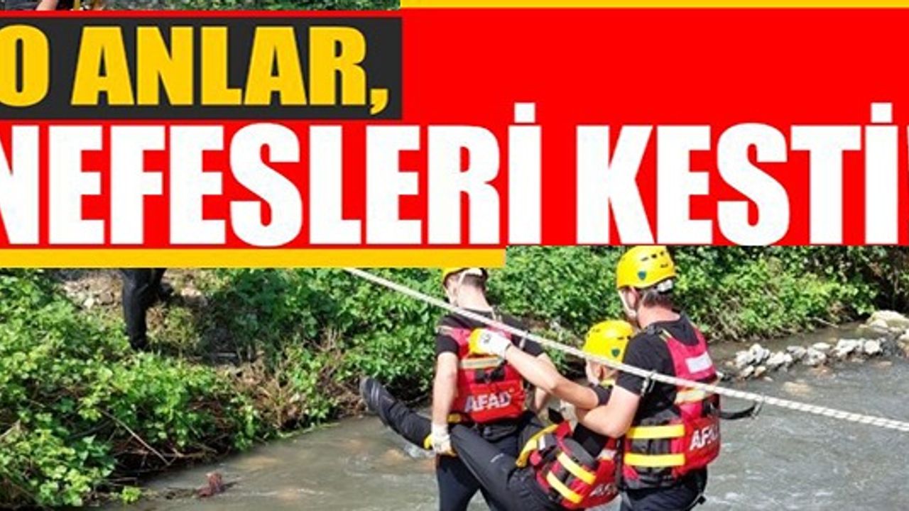 Su üstü arama kurtarma tatbikatında 11 kişilik ekip ip istasyonu kurarak dereden geçiş ve yaralı taşıma usulleri eğitiminden geçti.