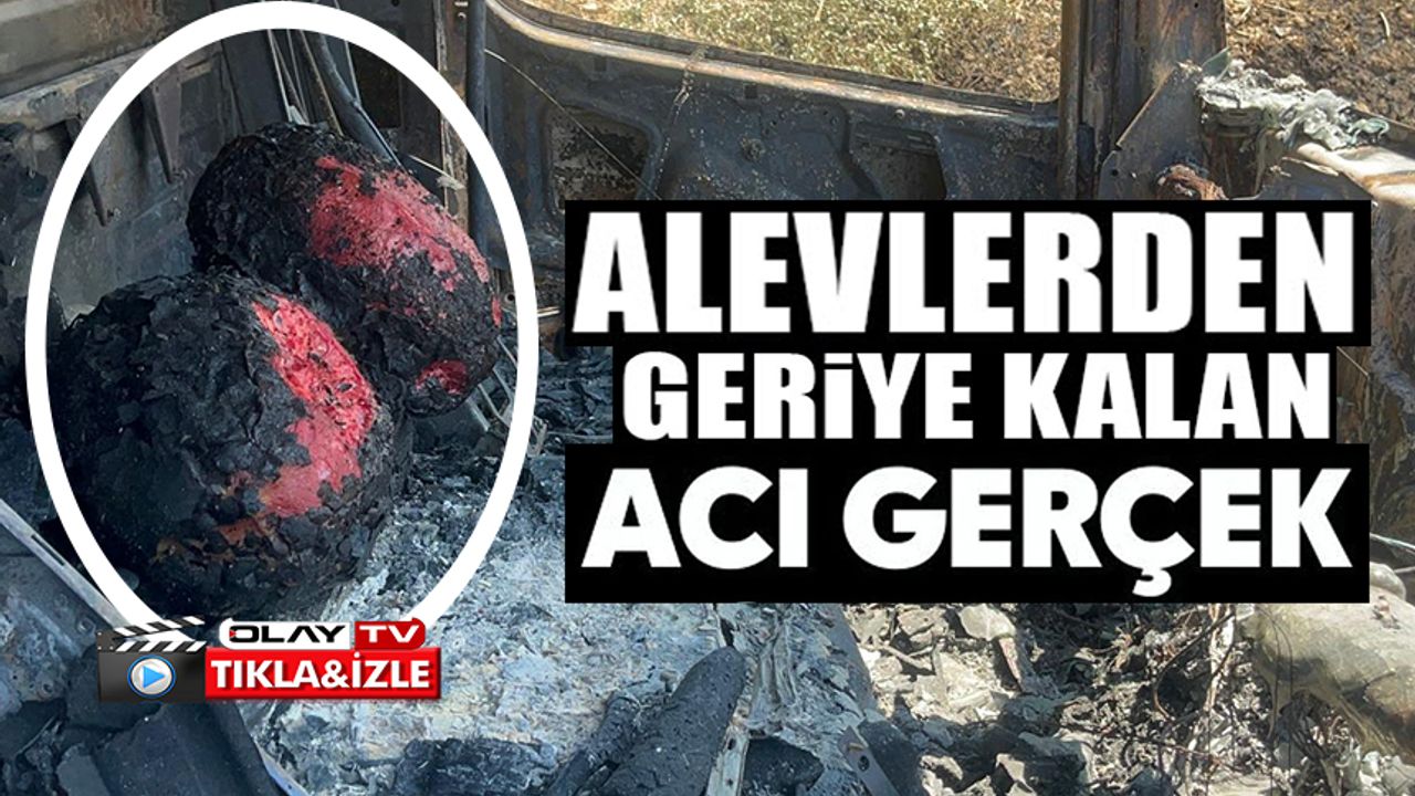 Bilecik'te orman yangınında alevler arasında kalan itfaiye aracı kül olurken, araç içinde yanan karpuzlar ve simsiyah olmuş baret, yangının dehşetini ortaya koydu.