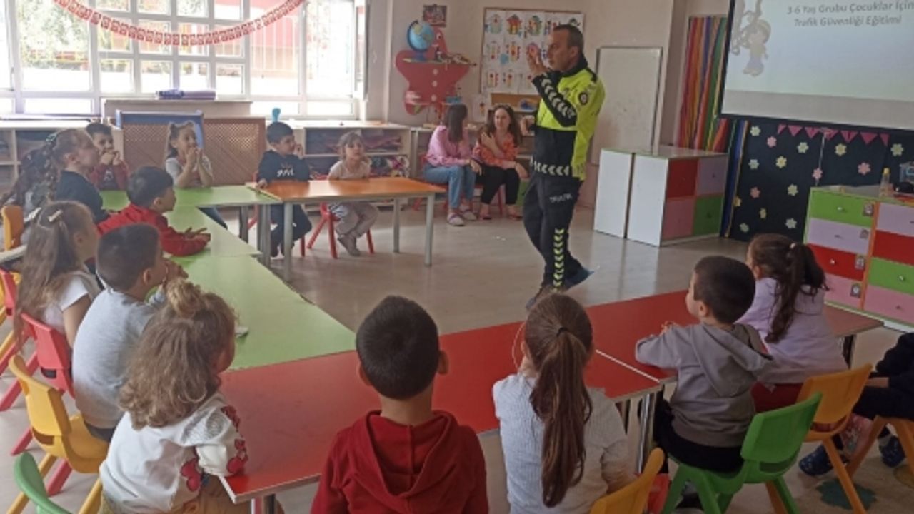 Çocuklara trafik kurallarını bir kez daha hatırlatan polis memuru Deniz Soylu, karşıdan karşıya geçişler, gece yürüyüşleri, ışıklı işaret cihazları, emniyet kemeri, bisiklet ve ilk yardım ile okul servis araçlarında uyulması gereken kurallar hakkında bilgiler verildi. Öğrencilere ayrıca trafik kurallarının önemi hakkında yayaların dikkat etmesi gereken hususlarla ilgili bilgiler de verildi. Trafik lambalarına uyulması konusunda çocukların velilerini uyarmalarını isteyen polis memuru Soylu, bu konuda çocuklarla sohbet etti. Öğrencilere trafik kuralları hakkında çeşitli slaytlar izletildi.